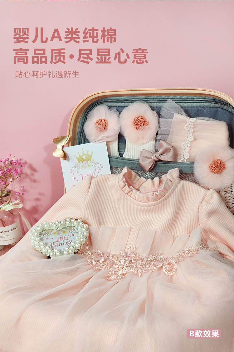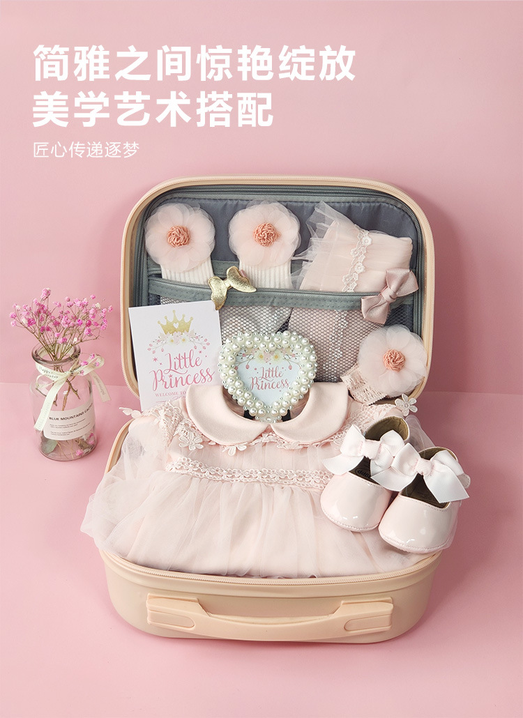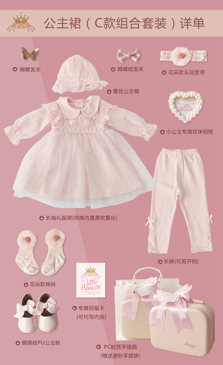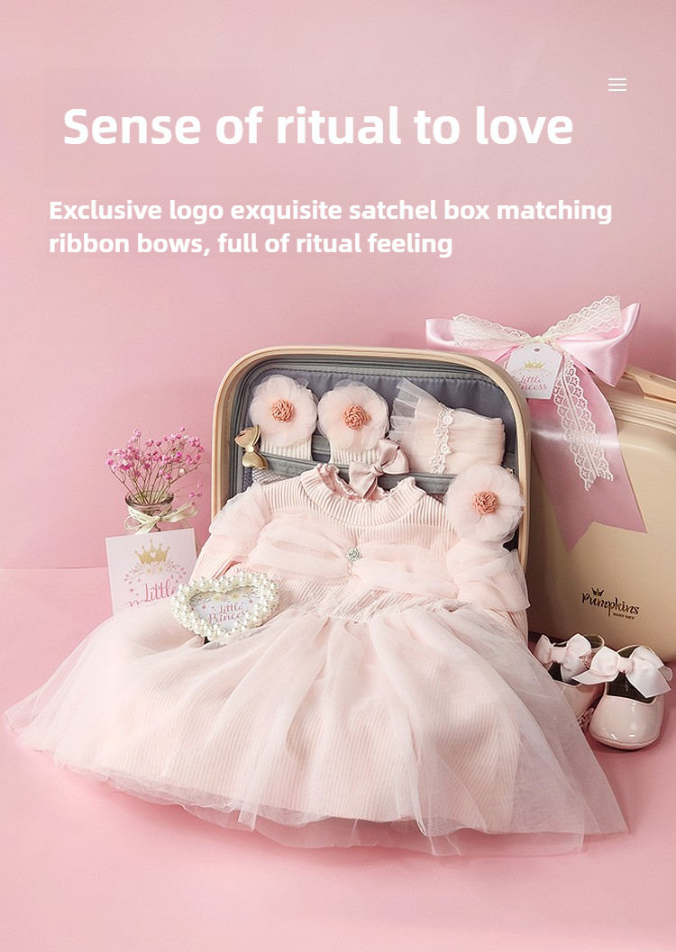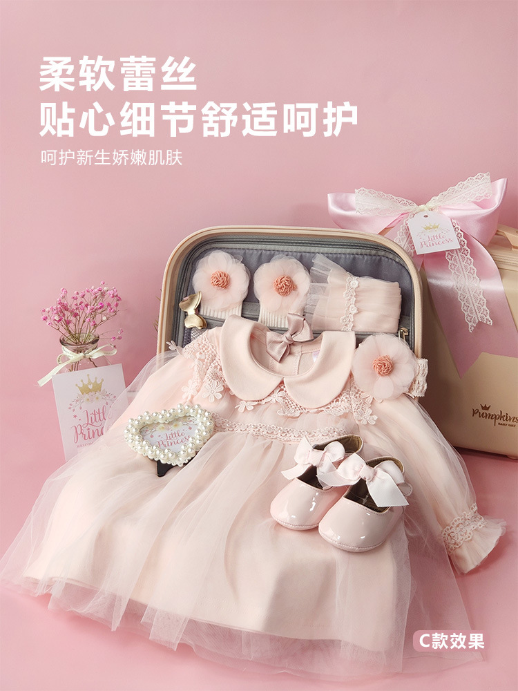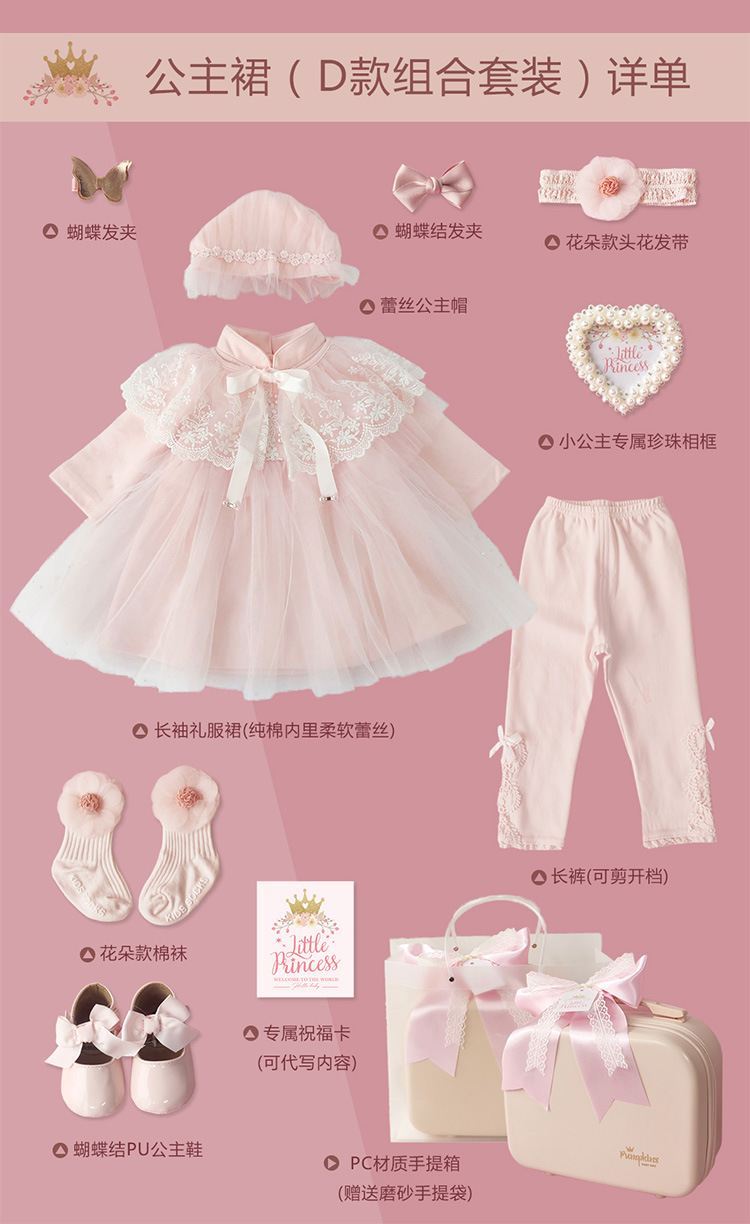 Baby-Geschenkbox, kleines Prinzessinnenkleid, Bankett zum 100-tägigen Geburtstag des Kinderbabys, Geschenktüte, rosa Anzug für Frühling und Herbst.