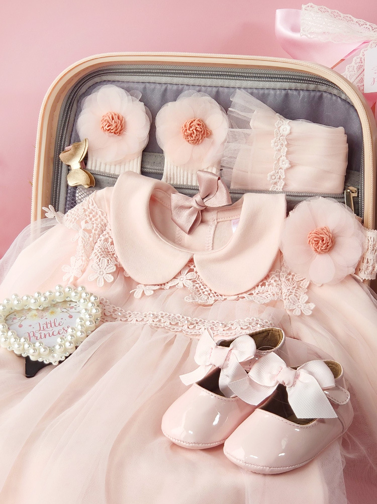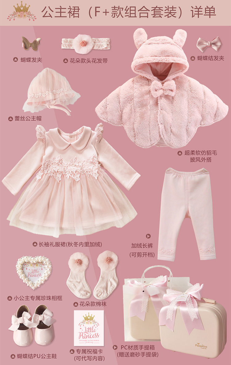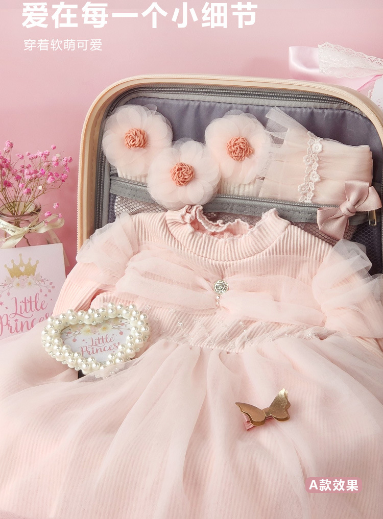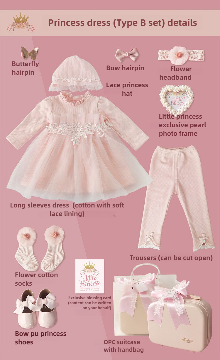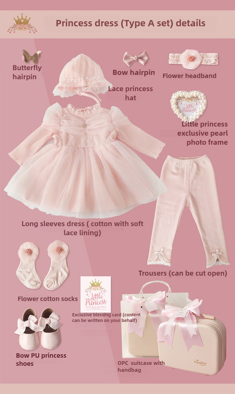 Baby-Geschenkbox, kleines Prinzessinnenkleid, Bankett zum 100-tägigen Geburtstag des Kinderbabys, Geschenktüte, rosa Anzug für Frühling und Herbst.