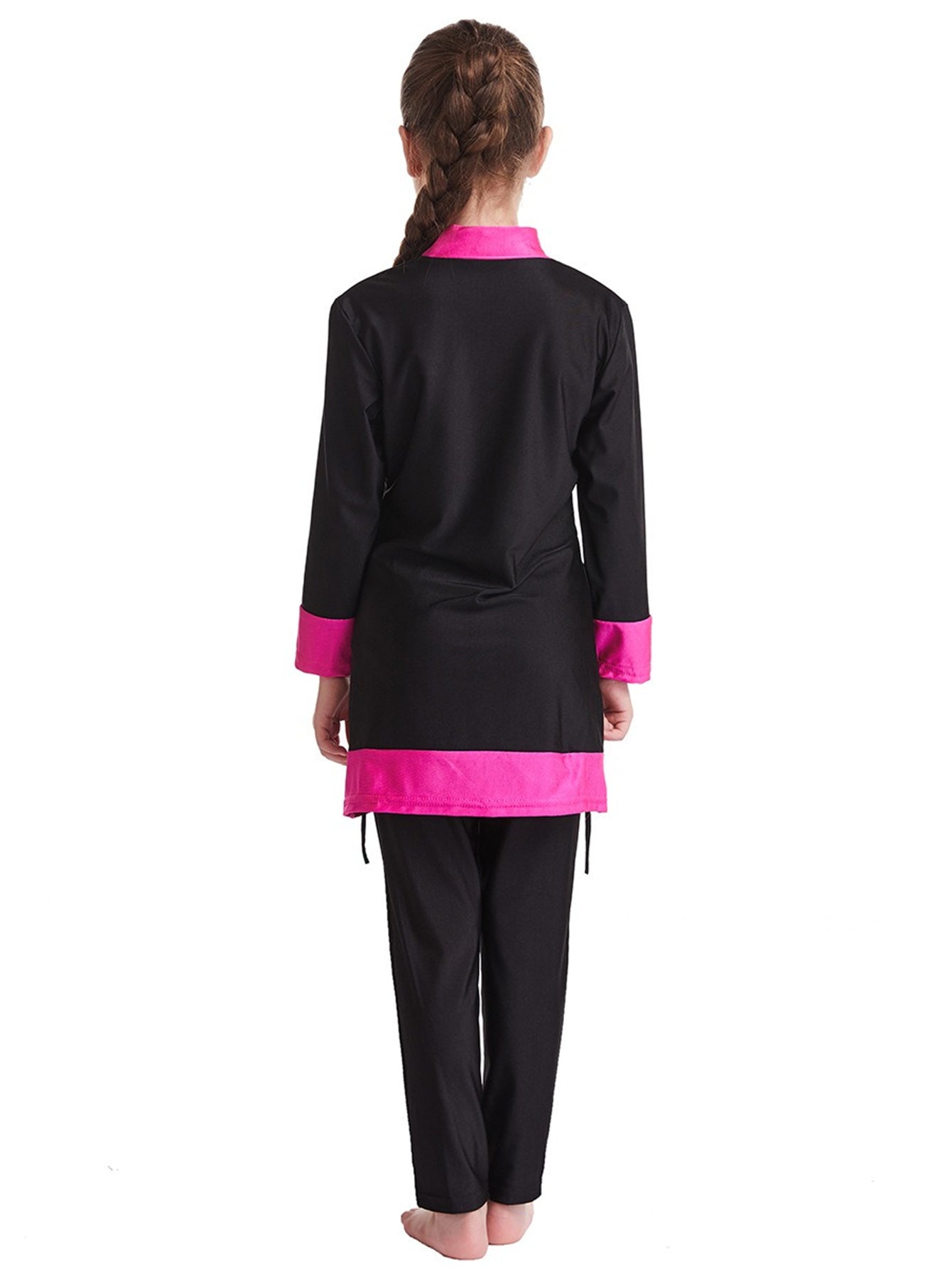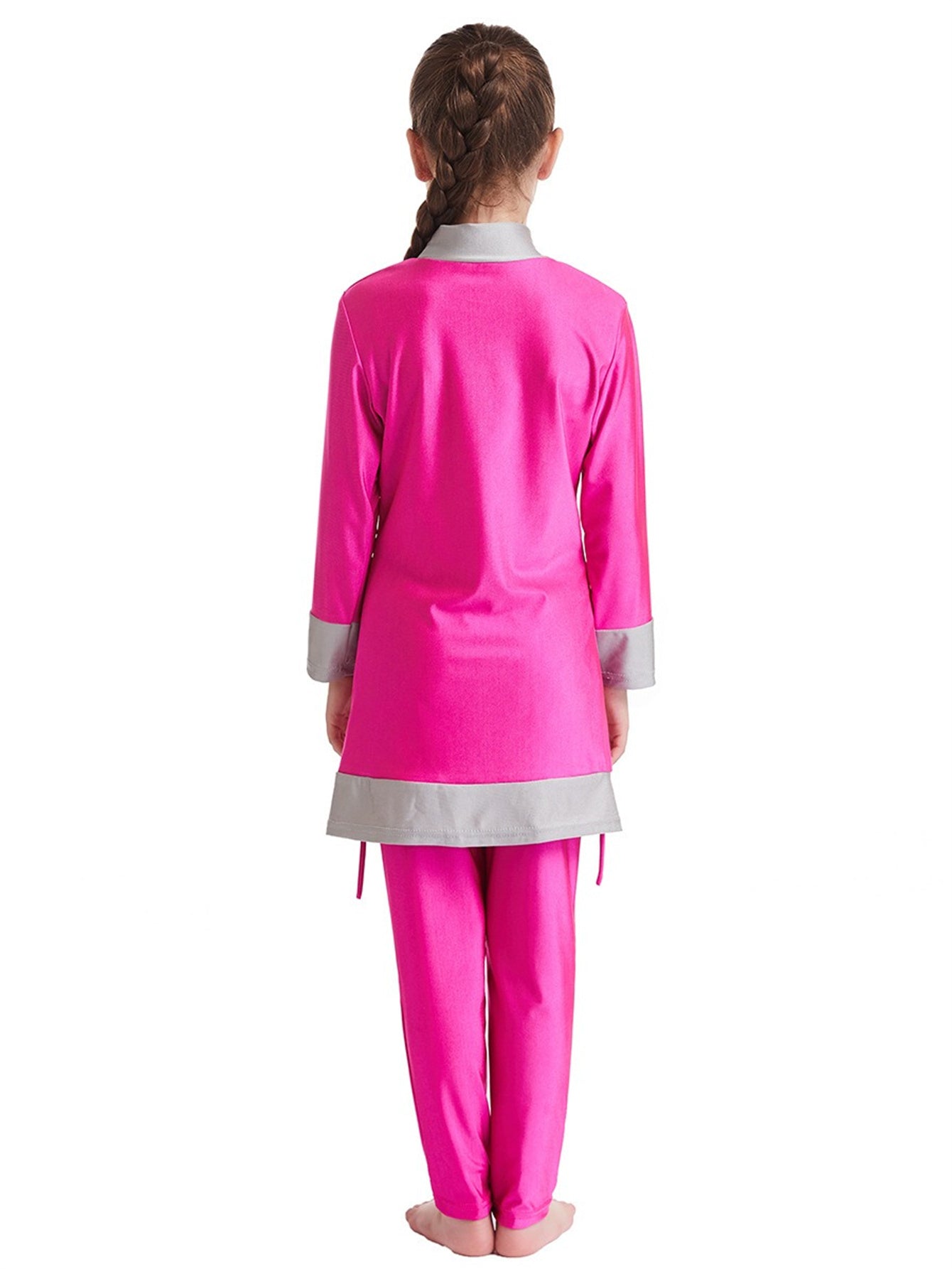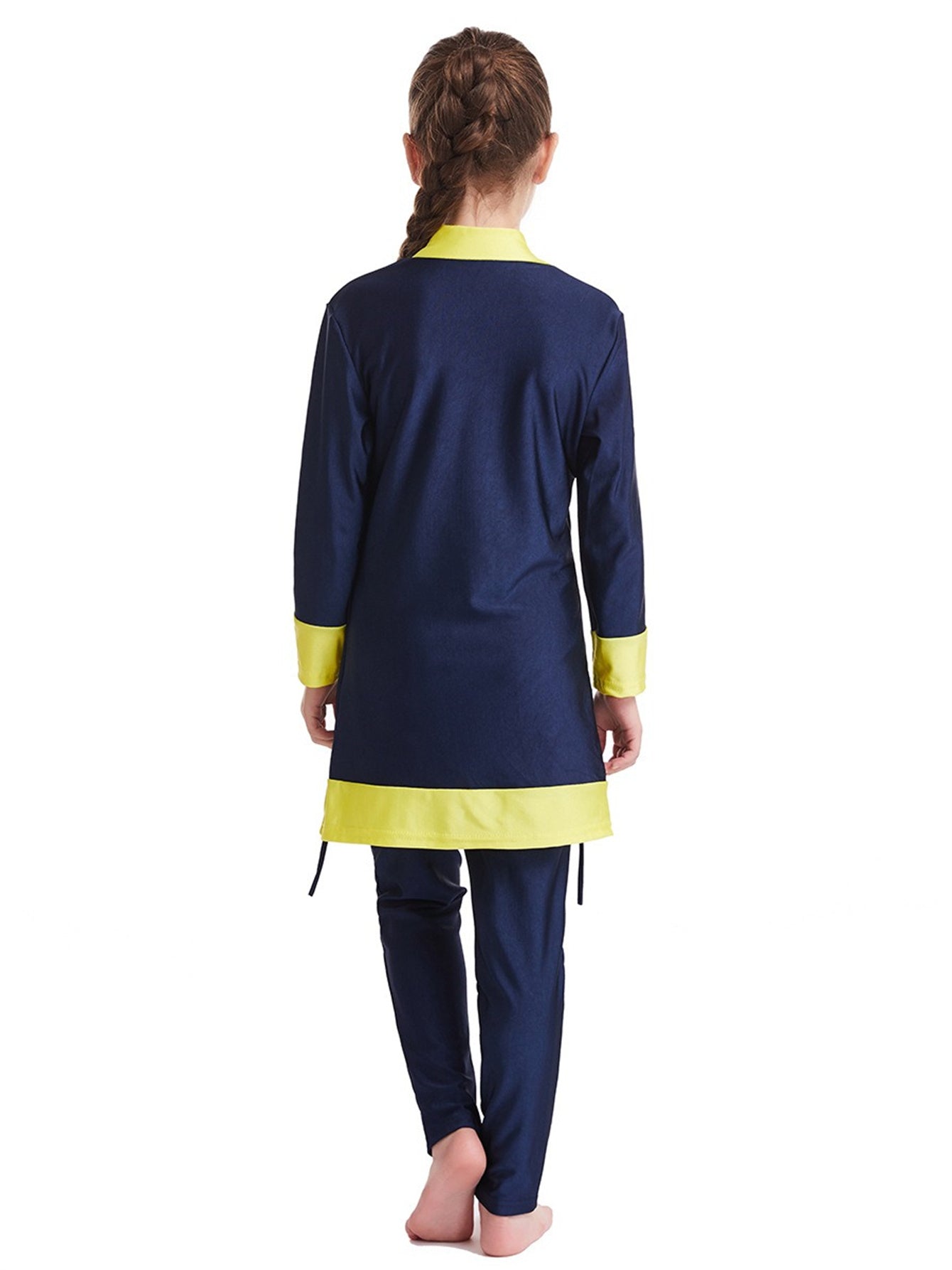 Girls' conservative color matching three-piece sun protection swimsuit